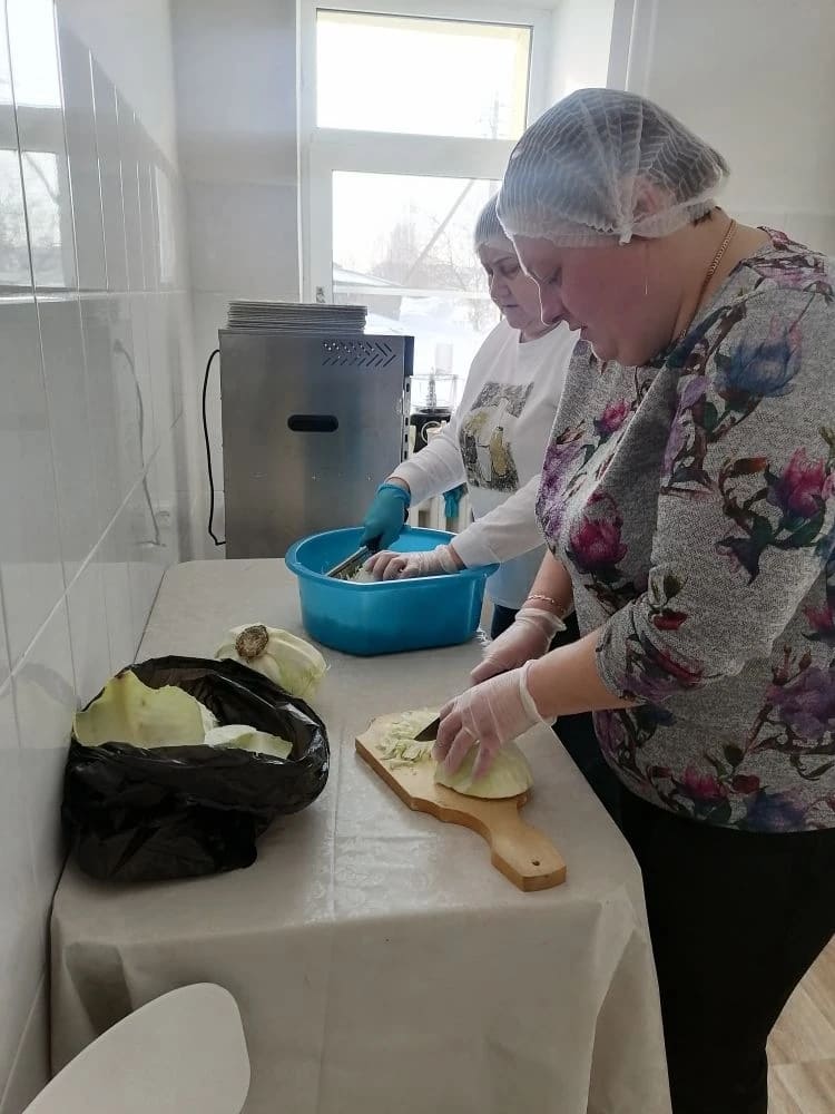 Сотрудники отделения "Специализированный жилой дом для граждан пожилого возраста и инвалидов" ГБУ "КЦСОН Краснобаковского муниципального округа" продолжают сушить продукты для изготовления сухих супов, отправляемых в зону действия СВО